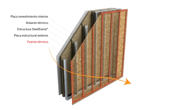 Los perfiles de acero, con una conductividad térmica 1.300 veces superior a los aislantes, crean una autopista para que la energía escape de su hogar. Esto se traduce en: